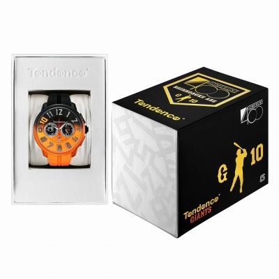 読売ジャイアンツ阿部慎之助400本塁打達成記念コラボモデル。ジャイアンツの「G」マークや記念ロゴ、阿部慎之助選手の背番号「10番」などこだわり抜いたデザイン。球団カラーである、ブラックとオレンジのグラデーションが印象的なウォッチは、応援スタイルはもちろん、普段のカジュアルな着こなしに差し色として着用していただける一本。