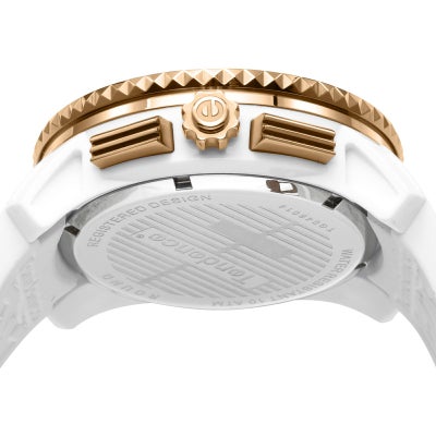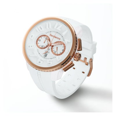 2007年に設立したTendenceの一番初めのコレクションである「GULLIVER Round」のクロノグラフ。 ブランド誕生時より、その圧倒的な大きさと存在感でたくさんの愛用者を生んできたテンデンスで一番人気のコレクションです。ブラックとホワイトをベースにしたモノトーンの配色がコーディネートを選ばず着用できます。腕に合うようにカーブしたシリコンストラップは軽く、腕にフィットするため、ビッグシルエットながらも軽やかな付け心地です。