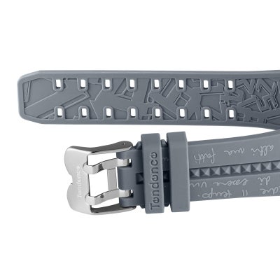 テンデンスの人気定番コレクションである『GULLIVER Round』がベースの新作『Gulliver ATTITUDE(ガリバーアティチュード)』。 ダイヤルやインダイヤルに模様としてデザインされている手書きのメッセージは、ブランド創設者である、ガブリエル・ジェルミーニ氏が書いたもの。 『流行に乗るのではなく、流行を自ら生むブランド』など、ブランドの神髄や考え方、コンセプトなど、テンデンスの商品づくりの姿勢についてイタリア語で書かれています。