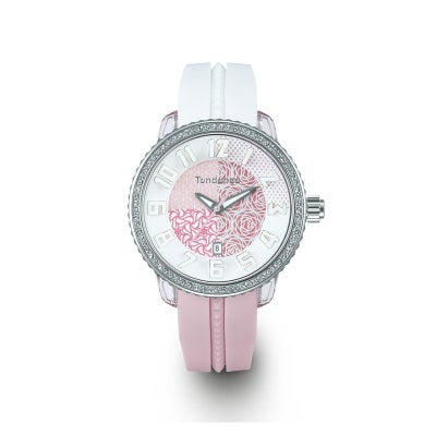 パターン(柄)とカラーで遊び心をデザインした、POPでエレガントな「CRAZY」コレクション。41㎜のミディアムサイズでありながら、カラーリングとデザインされた様々なパターン(柄)によって、腕元に印象を与えてくれる存在です。ケースの周りにはクリスタルストーンがデザインされ、キラキラと輝くアクセントに。