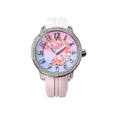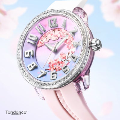 日本をイメージして2021年に誕生したJAPAN ICONの『SAKURA』モデルの2023年バージョンで、文字盤に満開の桜が立体的にデザインされています。文字盤カラーは、ピンクからブルーへのグラデショーンで青空に向かって花開く満開の桜を表現しており、ケース周りのクリスタルガラスが華やかさをプラスしています。日本の為に特別にデザインされた、新作の『SAKURA』2023年バージョンは数量限定の予約販売です。購入はテンデンス公式オンラインストアとテンデンス表参道店のみとなります。