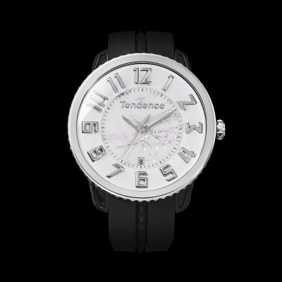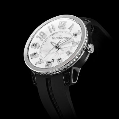 テンデンスのラインナップの中ではコンパクトな41mmサイズのコレクション「GULLIVER Round 41mm」をベースに誕生した本モデルは、文字盤中央に高級感とエレガンスな印象を与える大理石風のマーブル模様がデザインされています。 3時位置から左下に向かって流れるように配されたゴールドやシルバーのラインが時計全体のアクセントとなっています。 本モデルは日本限定、公式オンラインストア限定の商品です。(数量限定)