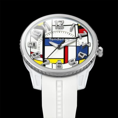 文字盤全体にピート・モンドリアンの名作「コンポジション」をあしらった時計は、インパクトあるルックスが特徴。カラフルであるものの、計算されたグリッドデザインゆえの落ち着いたエレガンスも兼備します。Tendenceにおける定番、GULLIVER Roundの持ち味である立体インデックスとの相乗効果により、遊び心にあふれたアートウォッチとして完成しています。