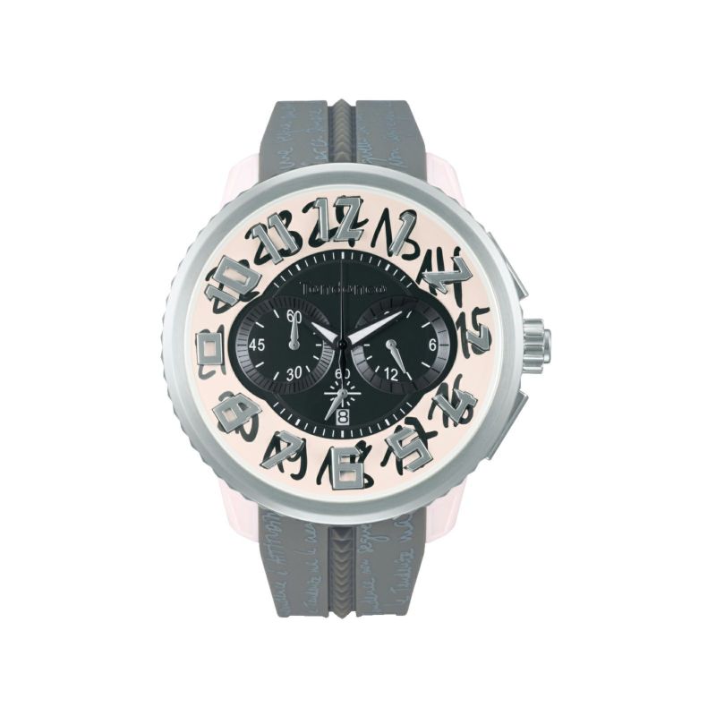 テンデンスの人気定番コレクションである『GULLIVER Round』がベースの新作『Gulliver ATTITUDE(ガリバーアティチュード)』。 ダイヤルやインダイヤルに模様としてデザインされている手書きのメッセージは、ブランド創設者である、ガブリエル・ジェルミーニ氏が書いたもの。 『流行に乗るのではなく、流行を自ら生むブランド』など、ブランドの神髄や考え方、コンセプトなど、テンデンスの商品づくりの姿勢についてイタリア語で書かれています。