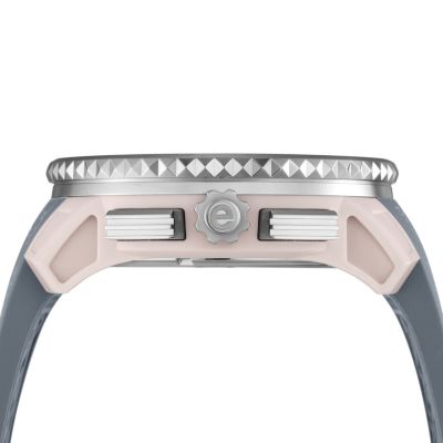 「ガリバーラウンド」にアルミニウムを使用したコレクション。ビッグフェイスでありながら、軽量かつ耐久性を備えた1本です。また素材の特徴によりカラーリングが鮮やかに映えるので、マットな質感とも相まって高級感と立体感を楽しめます。大人っぽい雰囲気でビビットな色が取り入れやすいこともポイント。