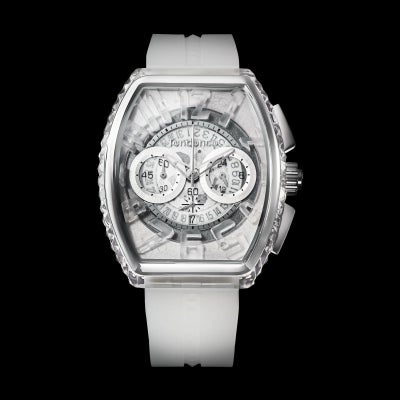 インデックス、文字盤、ストラップにクリア素材を使用し、奥行きを重層的に演出。ホワイトで統一したカラーリングはPIRAMIDEの人気No.1モデルです。