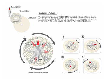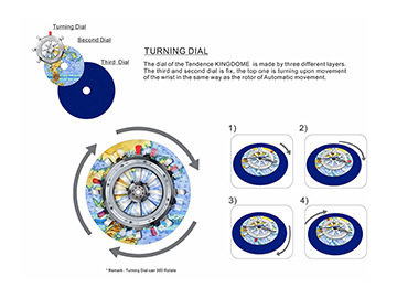 イーストブルーウォッチのダイヤル構造と回転イメージ