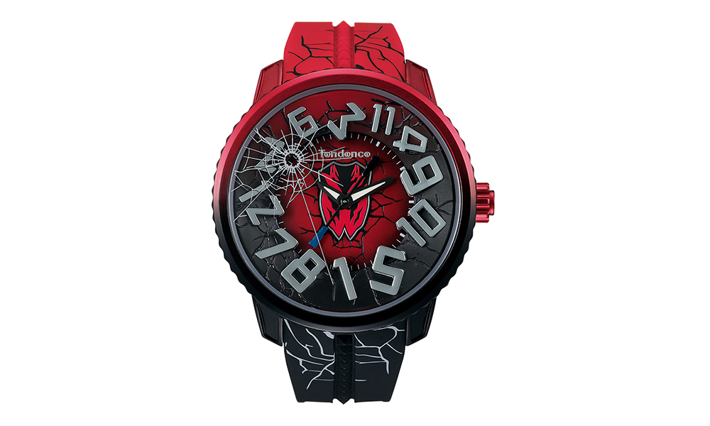 史上初となる悪に堕ちたウルトラマン「ウルトラマンベリアル」の、全てを破壊するバトルシーンをモチーフにデザインしたモデルです。時計はウルトラマンベリアルのボディーカラーであるブラックとレッドを取り入れる為に美しいグラデーションの「De’ Color(ディカラー)」コレクションを採用。深みのあるレッドでシックなカラーリングながら、ガラス、ストラップ、文字盤などに破壊によってできたひび割れを力強く表現しています。秒針は武器の「ギガバトルナイザー」をモチーフにしたデザインが施され、文字盤上は“混沌”を表現したかのように数字がバラバラに配置されているのも特徴です。(文字盤にメモリが付いているので、時計としての機能は保証されています。)時計の中央にはウルトラマンベリアルの胸元がデザインされています。裏蓋やBOXスリーブ、購入者特典のノベルティ(時計置きPAD)には、ウルトラマンベリアルのフェイスがデザインされています。