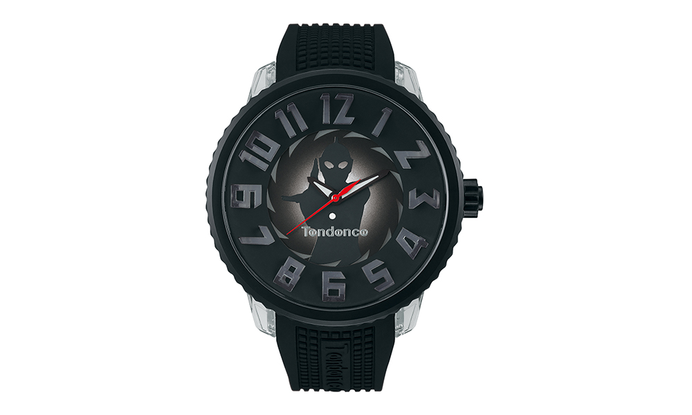 ウルトラマンのトレードマークであるカラータイマーから想起したこのモデルは、テンデンスの人気コレクションである「光る時計FLASH」をベースにデザインが考案されました。時計のカラーはオールブラックで、時計の中央にはウルトラマンのシルエットがデザインされています。3時位置にある「リューズ」という摘みを内側にプッシュすると、時計の内部から閃光が放たれ、時計全体が光り輝きます。光のカラーは全部で7色(ブルー、グリーン、レッド、ライトブルー、イエロー、パープル、ホワイト)あり、3秒以上強く長押しすると、色のセレクトが可能です。7色の単色パターンに加え、すべてのカラーがチカチカ光るジャンピングライトが付いています。時計の数字部分には、M78星雲・ウルトラの星を表す為に、7時と8時位置の数字を逆にするという、ブランド史上初のユニークな仕掛けが施されています。また裏蓋や購入者特典のノベルティ(時計置きPAD)には、ウルトラマンの必殺技の一つ「ウルトラスラッシュ」がデザインされています。