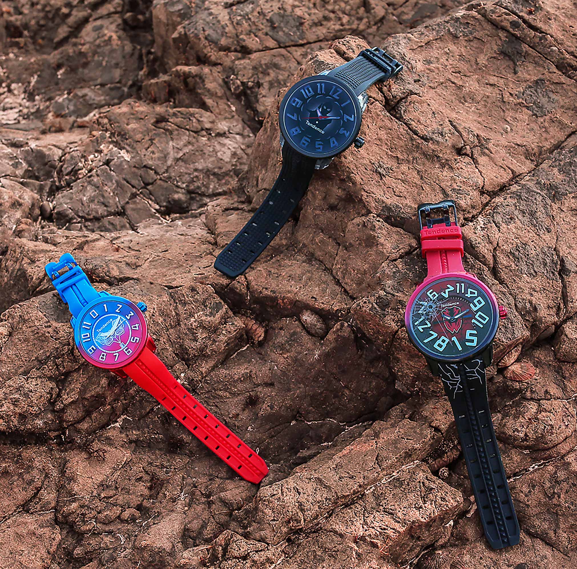 ウルトラマンゼロのボディーカラーを時計全体のカラーとしてデザインするために、テンデンスではフルグラデーションウォッチとして人気の「De’ Color(ディカラー)」コレクションがセレクトされ、トレードマークのブルーとレッドのボディーカラーを美しいケースのグラデーションとストラップのカラーで表現しています。時計の中央にはウルトラマンゼロの胸元がデザインされ、秒針のイエローカラーはゼロのアイカラーから想起されています。また、名前の“ウルトラマンゼロ”にちなみ、通常の時計では「12」と表現される数字部分を「0」にデザインしているところは、テンデンス史上初の試みとなります。ケースサイズは41㎜なので女性の方でも軽やかに着けることが可能です。裏蓋やBOXスリーブ、購入者特典のノベルティ(時計置きPAD)には、ウルトラマンゼロのシルエットがデザインされています。
