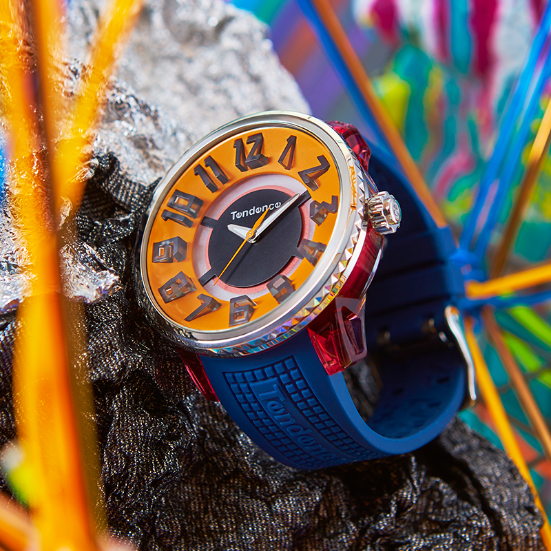 クリアレッドケースにオレンジ/ブラックのダイヤル。ストラップにはネイビーを使い、今シリーズ最多の4色を使った意欲作。