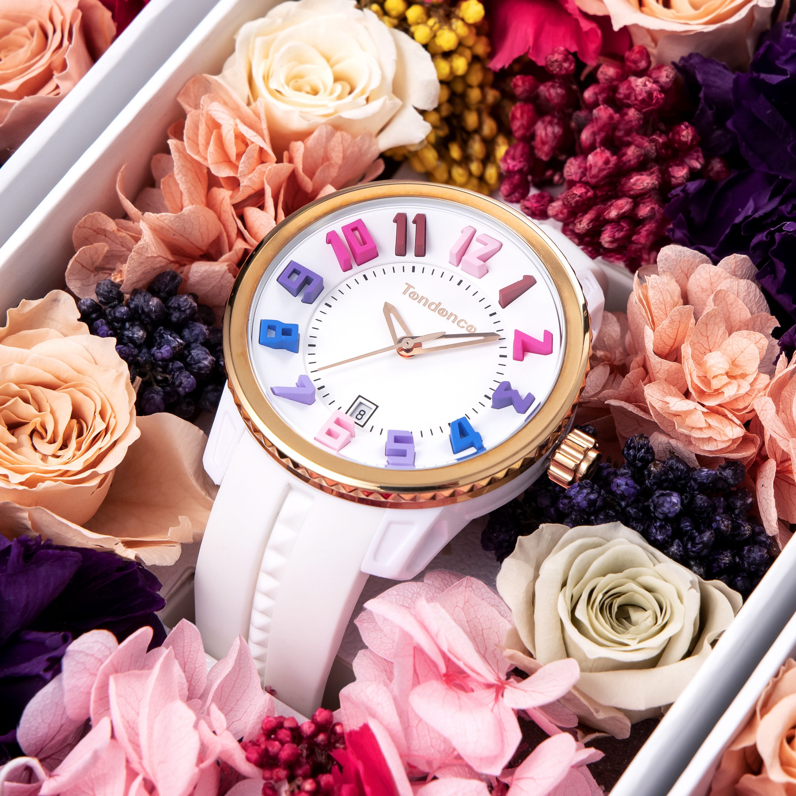 女性の腕に合わせやすい41mmサイズで、カジュアルなスタイルにもドレスなスタイルにも合わせやすいローズゴールドカラーが魅力的な一本です。
