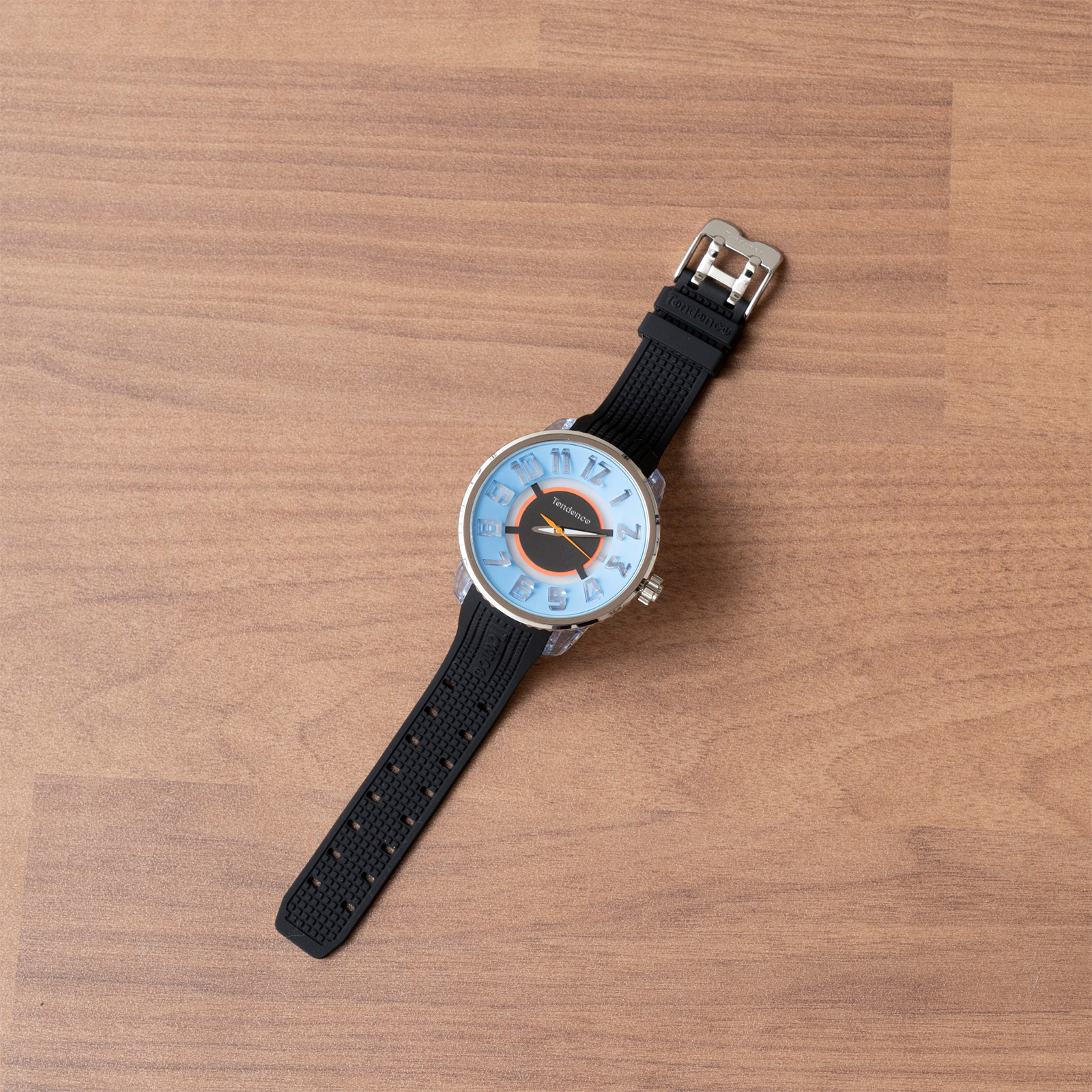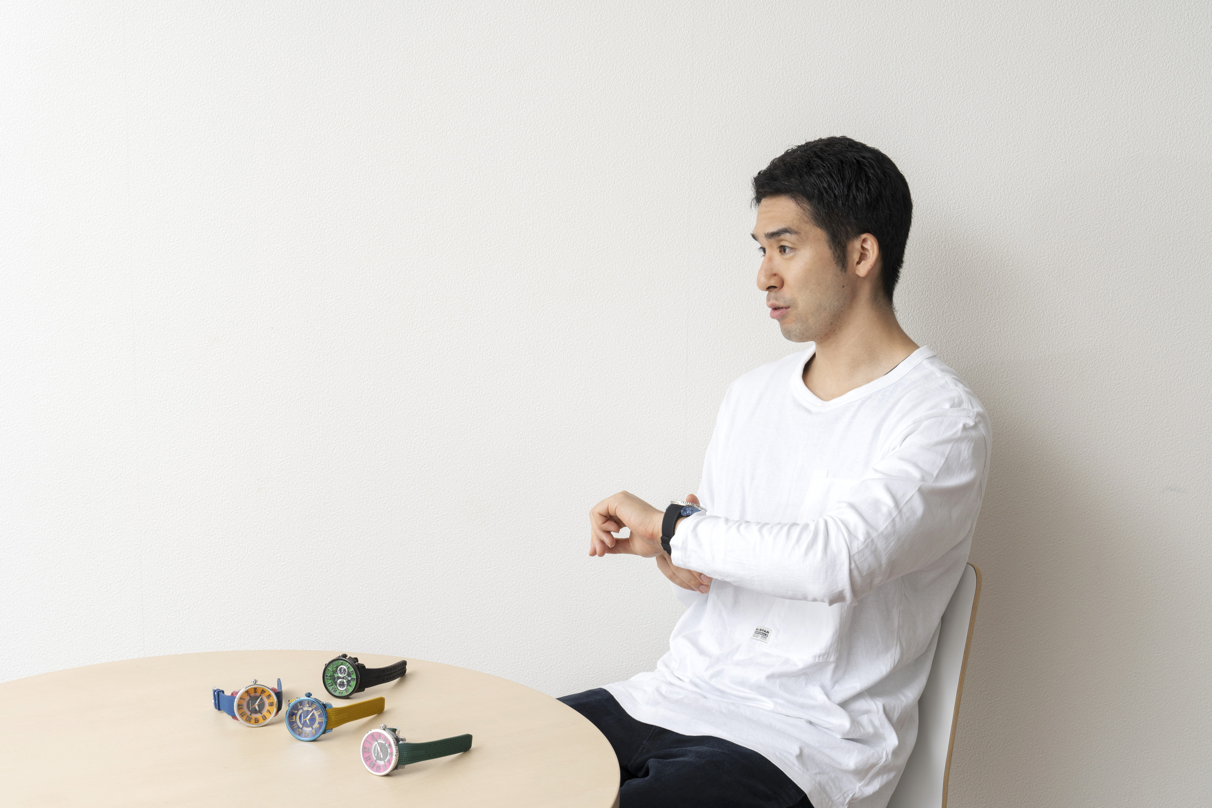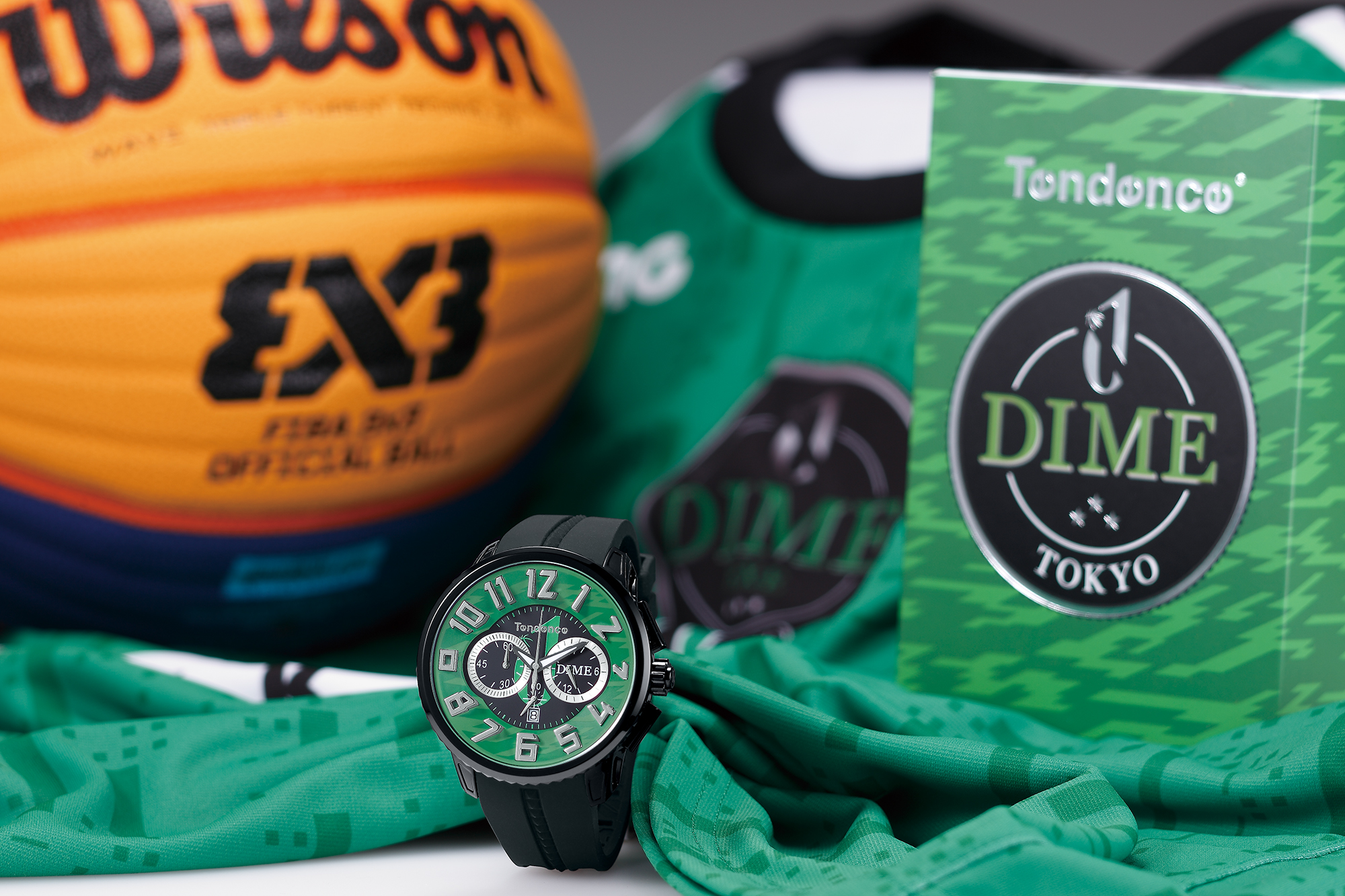 「仕事中に時計を着けることはあまりないんですが、テンデンスの時計は毎回練習バッグに入れてますね。特に今回コラボさせてもらったグリーン×ブラックのカラーリングが気に入っていて。今はなかなか難しいかもしれませんが、パーティなどのイベント、例えばTOKYO DIMEだとスポンサーさんのイベントがある時には必ずテンデンスを着けますね。テンデンスって、ちょっと大きくて、柄がカッコよくて、カラーも服に合わせやすいのでプライベートでは必ず着けてますよ!」