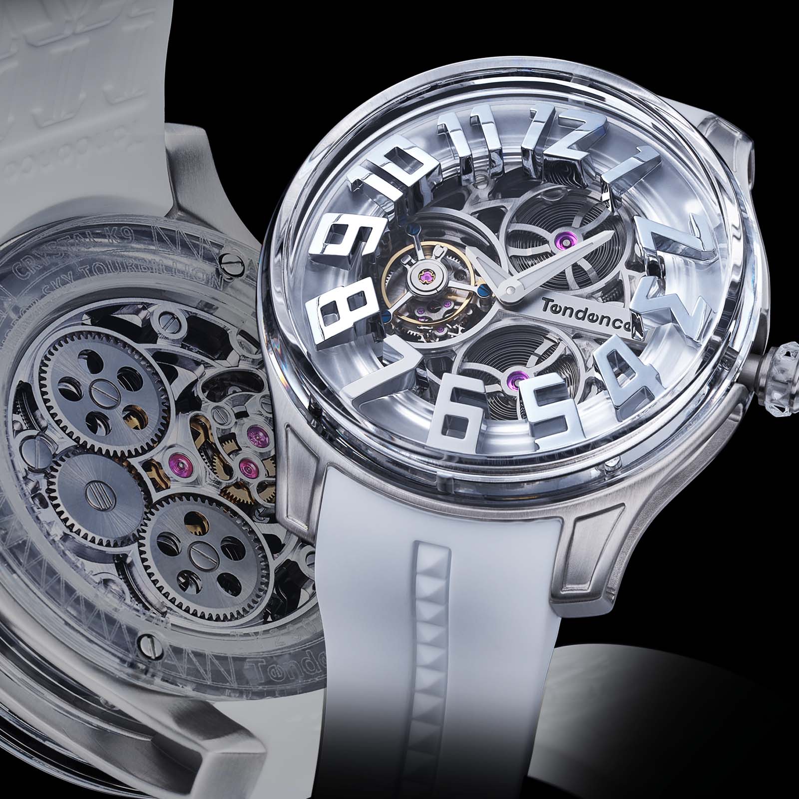 手巻き(トゥールビヨン搭載) パワーリザーブ約60時間 K9クリスタル /ナイロン・ステンレススチール シリコンストラップ 日常生活防水 ケースサイズW50㎜×H50㎜